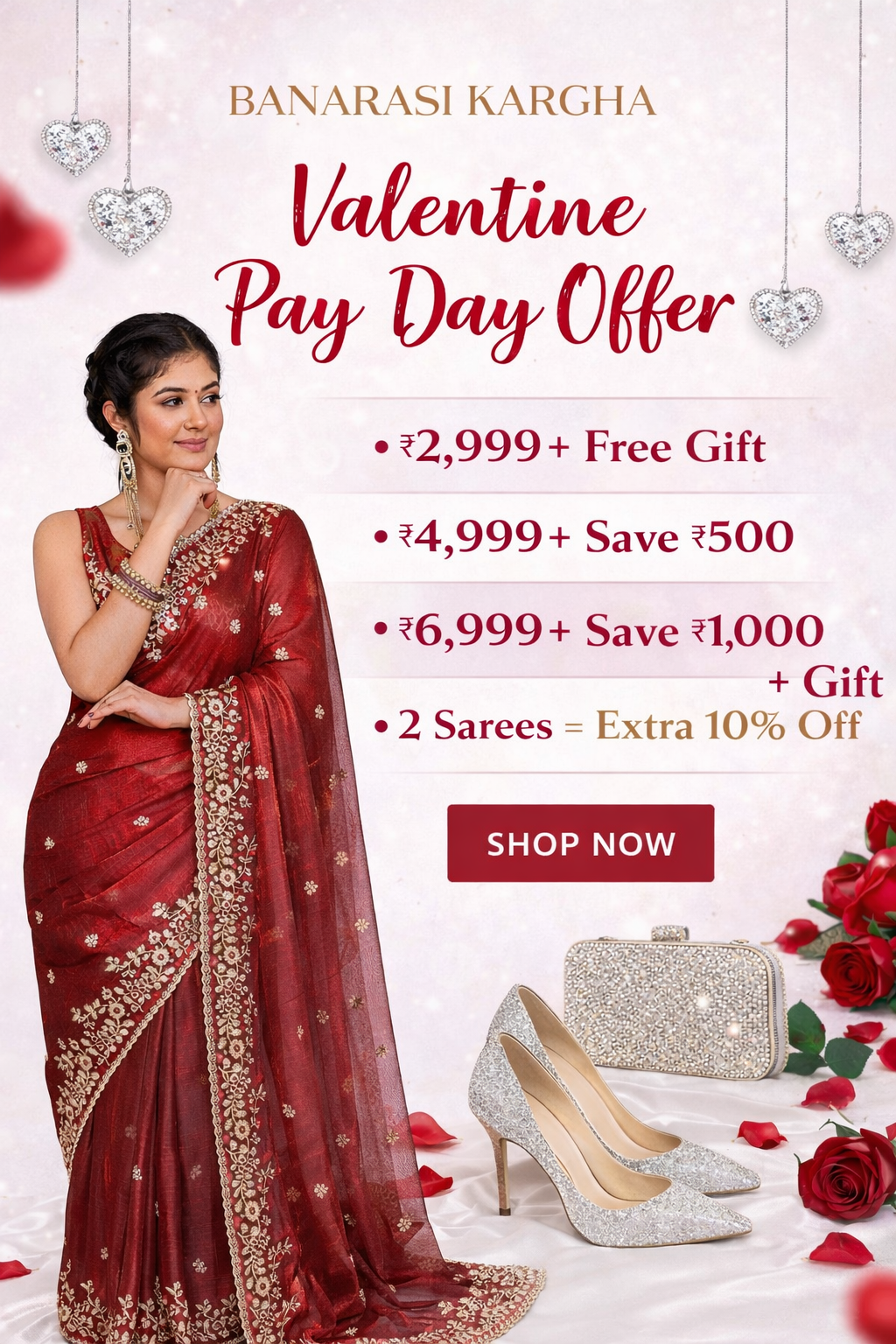 Red Embroidered Tissue Banarasi Cocktail Saree with Lace Border